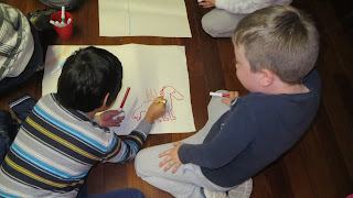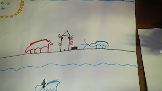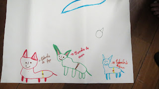 Aqui fica a história inventada em conjunto pela turma do 3ºano, uma das várias actividades do atelier. Depois de cada um ter contribuído com uma frase, a Isabel narrou a história e eu acompanhei à guitarra. Por fim, todos desenharam em conjunto a partir da história que imaginaram.